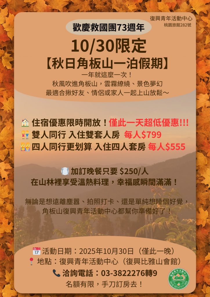 114.10.30限定~秋日角板山一泊假期-114.10.30